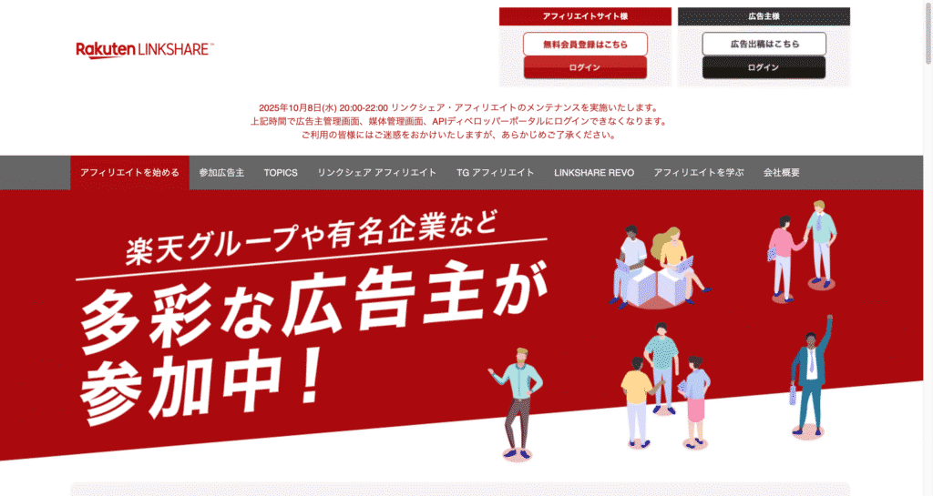 楽天グループが運営するASPで、「リンクシェアアフィリエイト」と「TGアフィリエイト」の2つのサービスがあります。