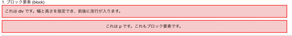 ブロック要素は、Webページの中で文章や画像などをひとまとまりにして配置するときに使います。
