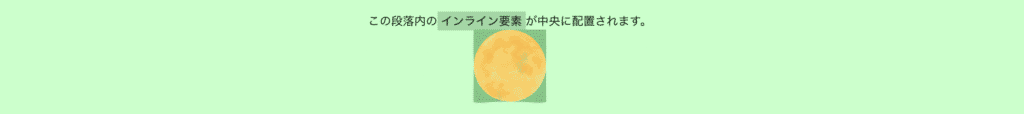 <p>この段落内の<span class=”inline-center”>インライン要素</span>が中央に配置されます。</p>