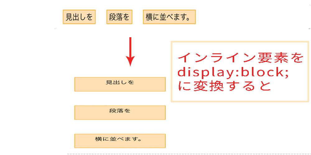 display:inline-block; ブロック要素のように幅や高さを指定でき、かつインライン要素のように横に並べることができます。