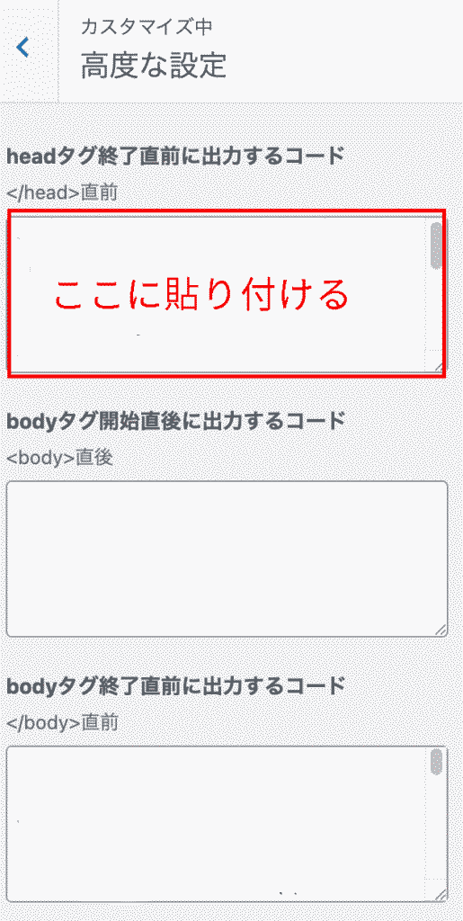headタグ終了直前に出力するコード」の欄にコピーしたタグを貼り付ける