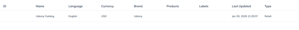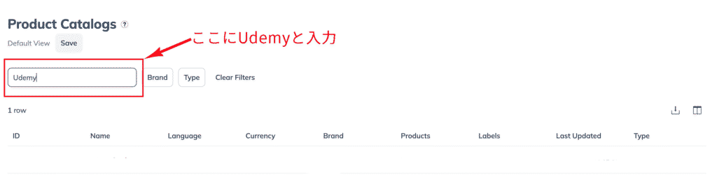 上部メニューContent > Product Catalogs で検索バーに「Udemy」と入力