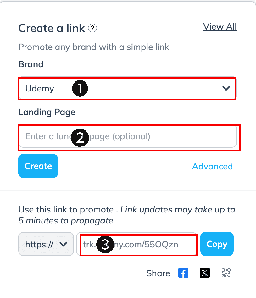 3. Udemyに申請して「Active」になったらリンクを作成する