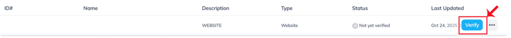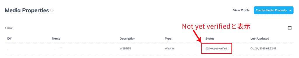 下図のように、ステータスが [Not yet verified] になっていたらまだ認証が終わっていない状態です。