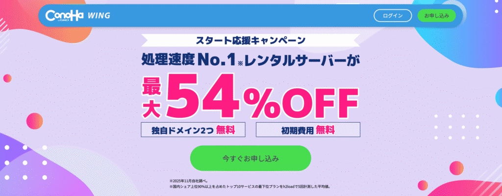 [2026年4月22日まで限定キャンペーン]ConoHa WINGの月額費用が最大54%OFF