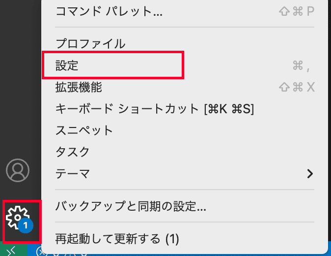 ❶ 左下の歯車のアイコン → 「設定」 を開く