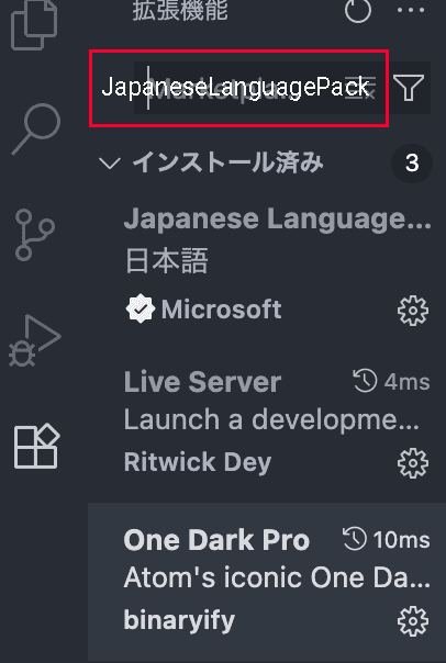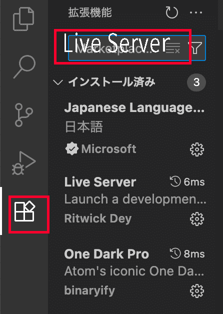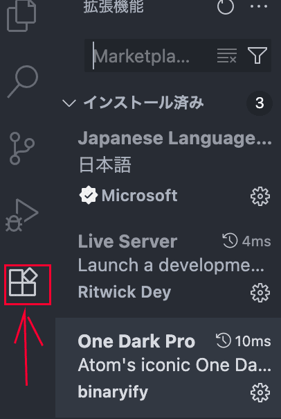 左側のアイコンバーの四角いアイコン(拡張機能)をクリック。