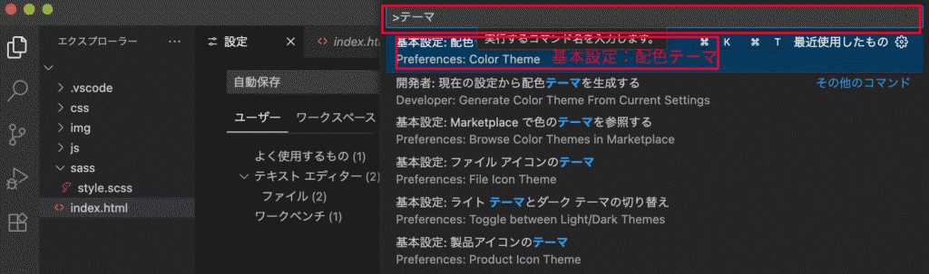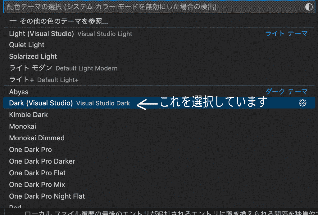 VS Codeは、見た目の色合い(テーマ)を変更できます。