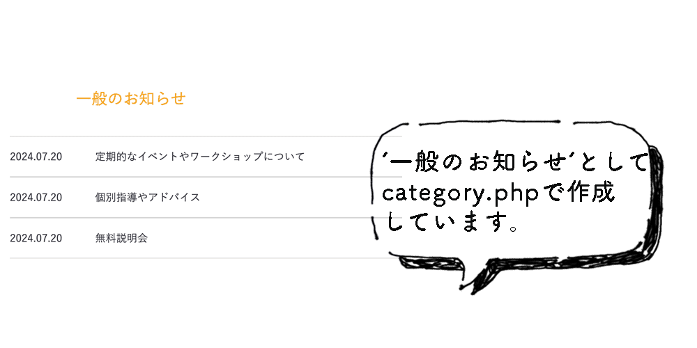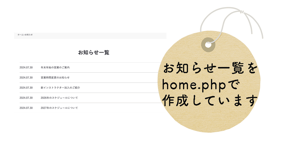 home.php でお知らせ一覧を作成しています。