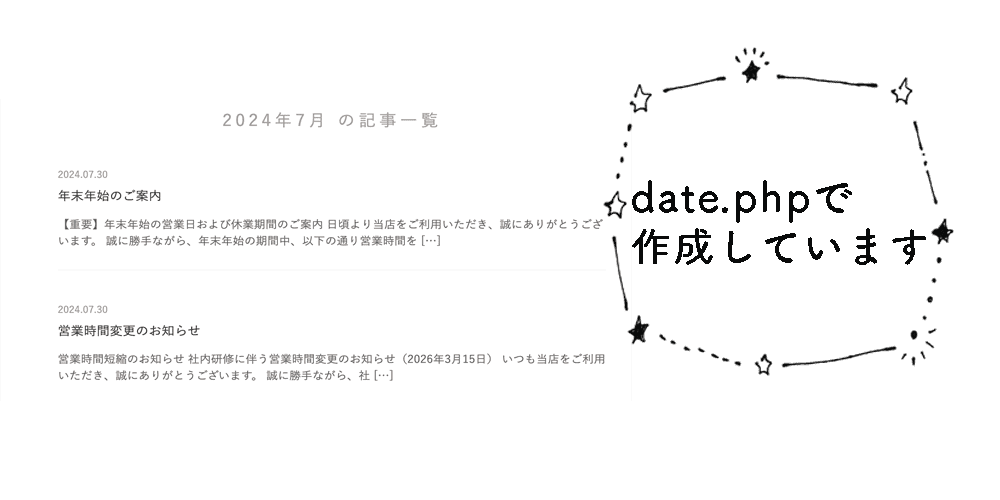 ❷ archive.php →アーカイブ(一覧ページ)を表示するテンプレートファイル